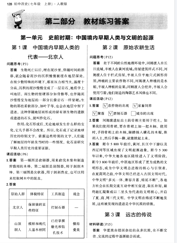 初中历史7-9年级《教材习题答案》