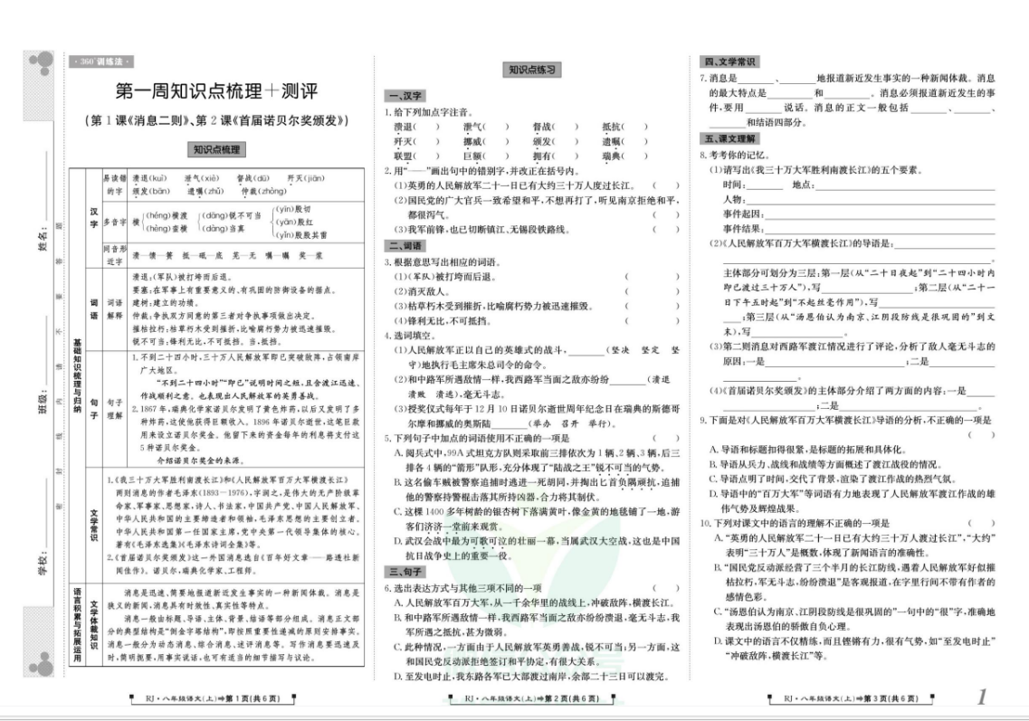 360°训练法·八年级上册语文人教版