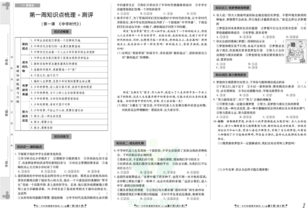 360°训练法·七年级上册道德与法治人教版